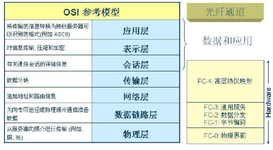 FC-0:物理層,定制了不同介質(zhì),傳輸距離,信號機(jī)制標(biāo)準(zhǔn),也定義了光纖和銅線接口
